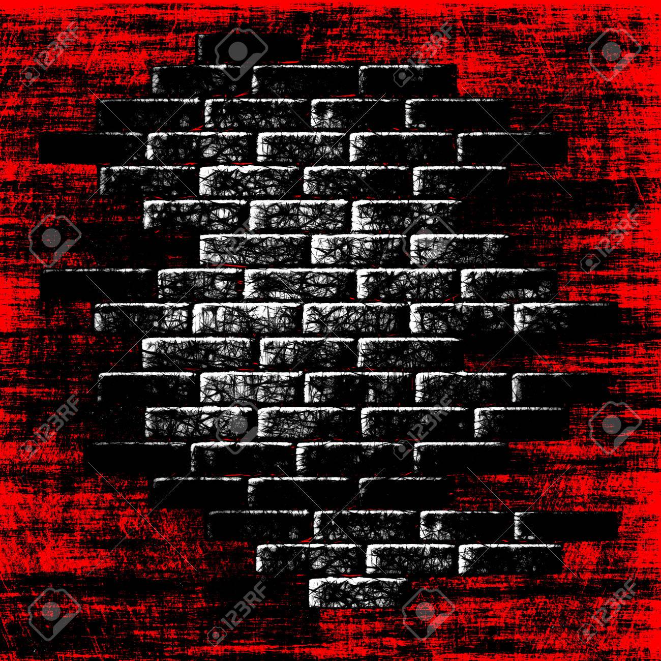 Grungy Red Abstract Background With Dark Bricks Inside Stock Photo